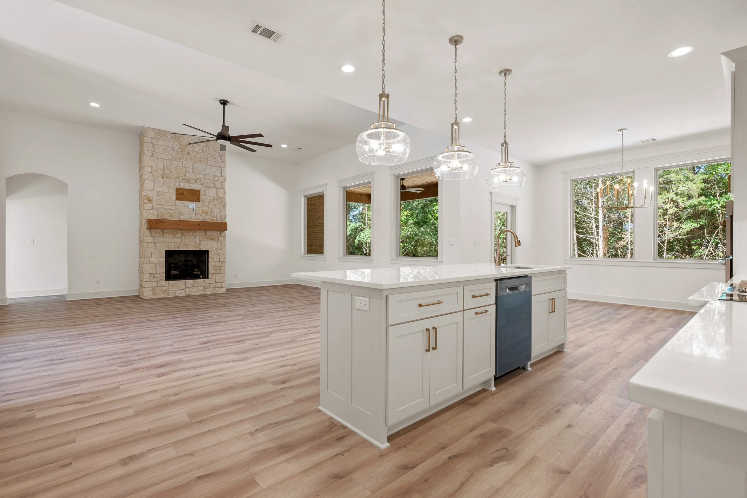 We conduct multiple walkthroughs throughout your build to ensure every detail meets your expectations. This includes a pre-clearing lot walkthrough to identify and preserve the trees you want to keep, a site walkthrough to confirm home placement, a framing walkthrough, and a dedicated cabinet and electrical walkthrough. These steps ensure your layout, features, and systems are fully coordinated and aligned with your needs.During the trim phase, we walk the home with you to finalize and coordinate paint, countertops, flooring, and backsplash, creating a cohesive, high-end finish throughout your home.